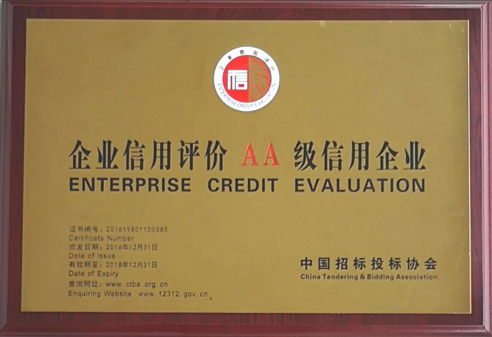 企業信用評價AA級信用企業